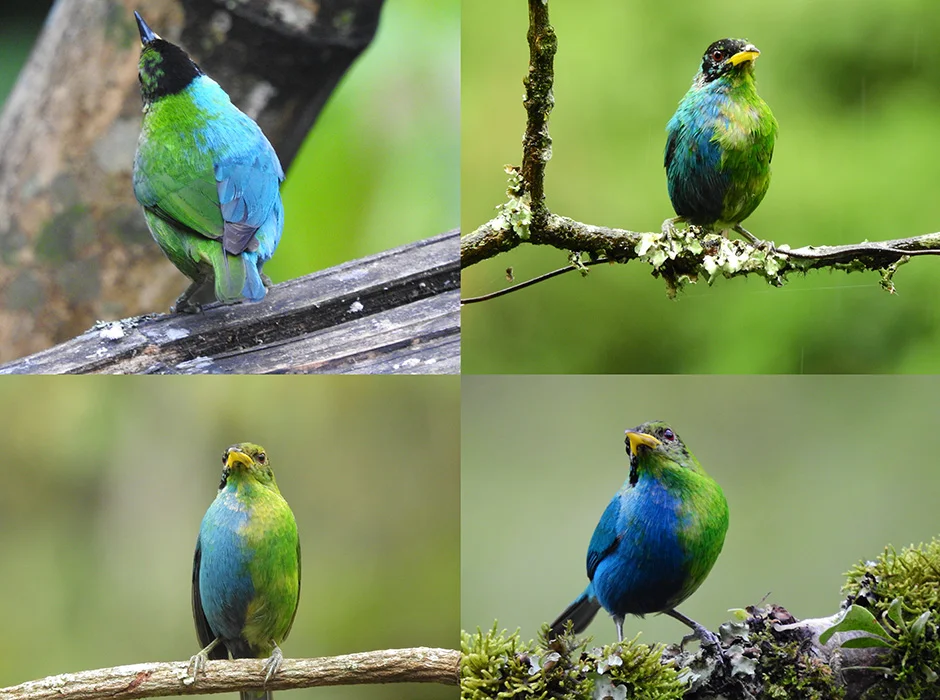 Colombian ornithologist John Murillo had discovered a very unusual Green Honeycreeper (Chlorophanes spiza) on his farm near Manizales in Colombia and pointed it out to Hamish when he visited early in 2023. The bird exhibited aqua-blue male plumage on its right and grass-green female plumage on its left. The bird’s head showed the black hood of a typical male on the right, but the left side was mostly green.